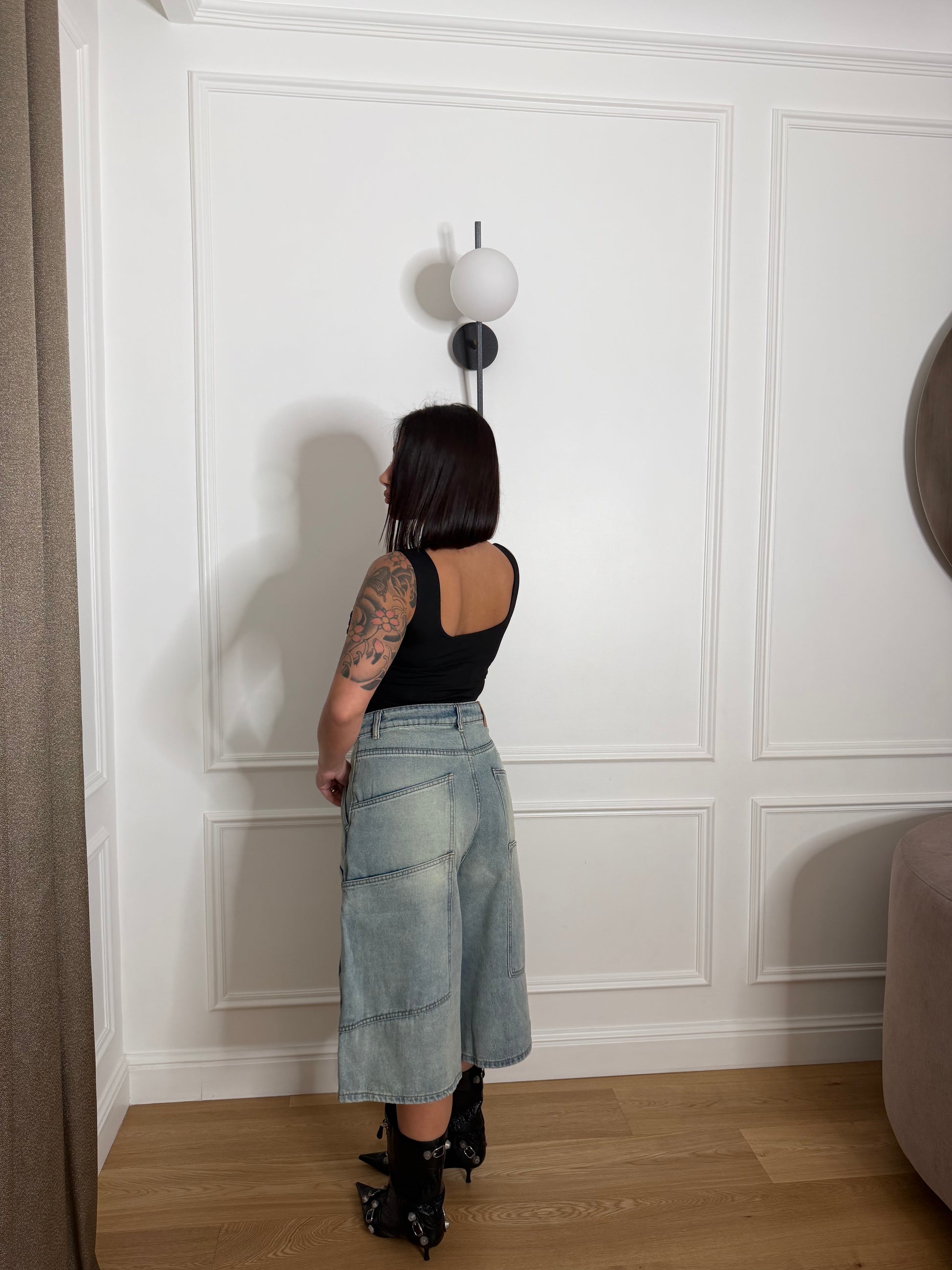 • Bermuda in denim lavaggio chiaro effetto vintage
